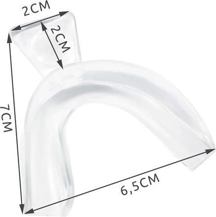 A Légzsák fogvédő rágás ellen hatékony eszköz a fogcsikorgatás okozta károk megelőzésére. Könnyen illeszkedik bármilyen fogívhez, és használható alsó vagy felső fogsorra is. **Pihentető hatás:** Segít ellazítani a feszültség alatt álló állkapocs izmokat, csökkentve a temporomandibuláris ízületek terhelését. Elősegíti a kényelmesebb beszédet és étkezést hosszú távon. **Védelmi jellemzők:** Megakadályozza a fogzománc kopását, az ínyvérzést fogmosáskor, az állkapocs-izomfájdalmakat és a temporomandibuláris ízület fájdalmát. **Biztonságos anyag:** A fogvédő speciális, egészségre nem károsított anyagból készült. **Műszaki jellemzők:**