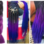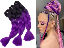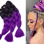 Ez a ragyogó lila ombre stílus ideális eredeti frizurákhoz, amelyeket az alkalomnak megfelelően változtathat. Készítsen ragyogó megjelenést fesztiválokon, karneválokon vagy más eseményeken ezekkel a sokoldalú fonatokkal.