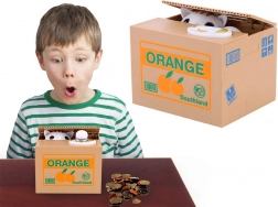 Amikor érmet helyezel bele és finoman megnyomod, a cica előbújik, nyávog és elveszi az érmét – szórakozás az egész családnak!