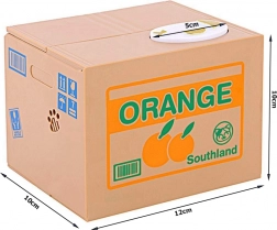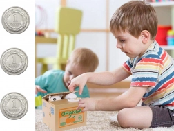 A persely egy gyümölcsös ládának van formázva, amely nemcsak a spórolásra motivál, hanem a szemet is gyönyörködteti.