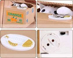 Egyszerűen aktiváld az ON kapcsolóval, és nézd meg, ahogy a doboz fedele felnyílik, a cica aranyos nyávogással össze is szedi a belső érméket. És ha eljött az ideje a megtakarítások felhasználásának, a persely könnyen kinyitható.