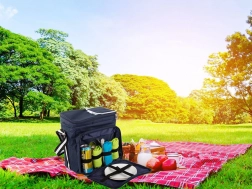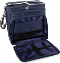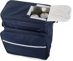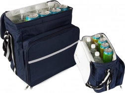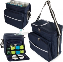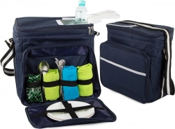 Belső rugalmas pántok tányérok és evőeszközök számára, külső zsebek apróságoknak. A könnyű szállítást állítható vállpánt biztosítja.
