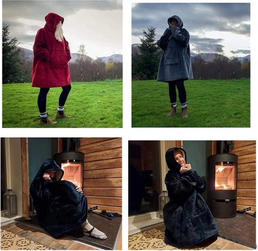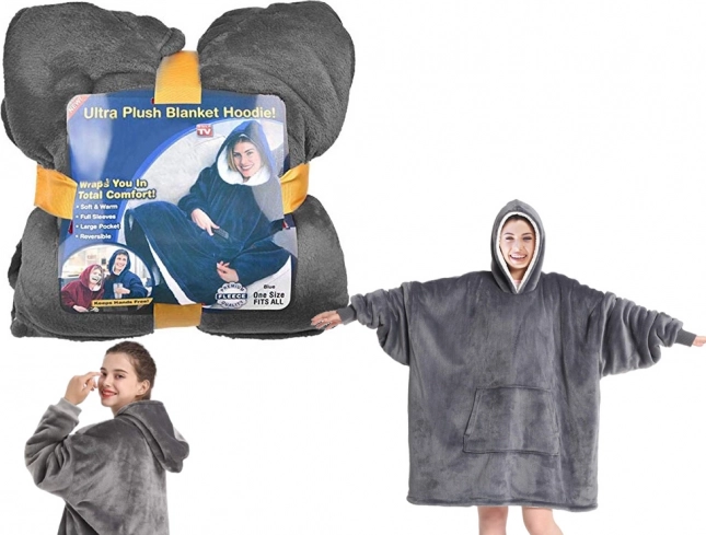Univerzális méret mindenkinek megfelel – nőknek, férfiaknak és gyerekeknek. A praktikus kapucni melegen tartja a fejet, és párnaként is használható.