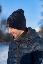 A sapka finoman illeszkedik, és felhajtással állítható. A sál és a kesztyű stílusos kiegészítővé teszi a szettet.