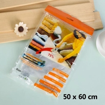 Praktikus, 50 × 60 cm-es vákuumzsák, amely helyet takarít meg és megóvja a tárgyakat. A levegő kiszívásával a térfogat jelentősen csökken, a tárolt dolgok pedig védve vannak a por, a nedvesség, a penész és a kellemetlen szagok ellen. Ideális tároláshoz, költözéshez és utazáshoz is.