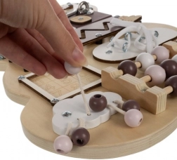 A tábla különféle tevékenységeket kínál, amelyek segítik a gyermekek finommotoros és kognitív képességeinek fejlesztését.