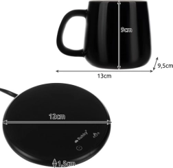 SPECIFIKÁCIÓK- szín: fekete + fehér; a bögre, fedő és kanál anyaga: kerámia; a talp anyaga: edzett üveg + alumíniumötvözet; vízállóság: igen; időzítő: igen; 2 fűtési program: V; névleges frekvencia: 50–60 Hz; bögre térfogata: 400 ml; melegítő mérete: 12 x 1,5 cm; bögre mérete: 13 x 9,5 x 9 cm; teljesítményfelvétel: 18 W; feszültség: 220 V; tömeg: 627 g; csomagolt tömeg: 865 g