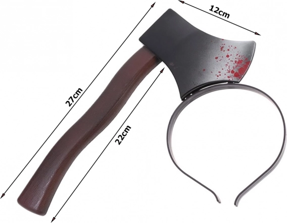 A fejpánthoz rögzített „balta” két vége meglepően valósághű hatást kelt egyetlen csepp vér nélkül. Ideális a figyelemfelkeltő, horroros megjelenéshez.
