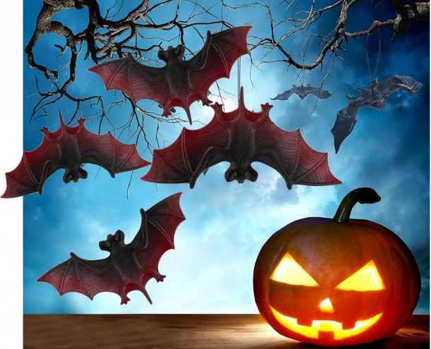 Teremts pillanatok alatt hátborzongató halloweeni hangulatot! Ez a 4 darab realisztikus denevérből álló készlet tartós műanyag/gumi anyagból készült, és ideális a lakás, a kert vagy a buli dekorálásához. Egyszerűen akaszd őket ágra, pókhálóra vagy polcra, és máris látványos dekorációt kapsz feltűnő fekete–piros szárnyakkal.
