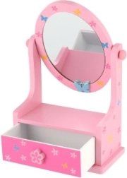 Ez a pasztell színekben pompázó fa ékszerdoboz állítható tükörrel tökéletes választás azoknak a kis hölgyeknek, akik gondosan szeretnék tárolni ékszereiket és értékeiket.