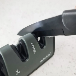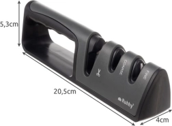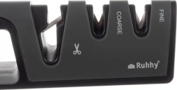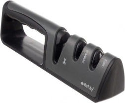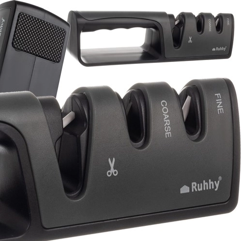 A praktikus, 3 fázisú RUHHY élező néhány húzással visszaadja kései és ollói élét. Az első nyílás az ollókhoz, a második a durva újraélezésre a sérült él kiegyenlítéséhez, a harmadik pedig a finom élezésre és polírozásra szolgál. A stabil kialakítás csúszásmentes lábakkal és ergonomikus fogantyúval kényelmes és biztonságos használatot nyújt.