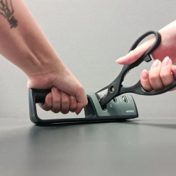 Külön nyílás az ollókhoz és két fokozat a késekhez: durva élkiegyenlítés és finom élezés a maximális vágási pontosságért.