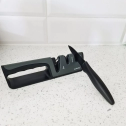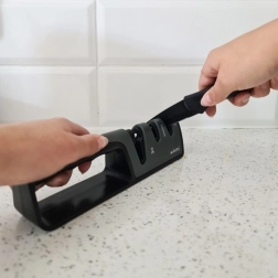 Könnyű, helytakarékos élező, amelyet egyszerűen elhelyezhet a fiókban. Ideális a konyhakések és ollók mindennapi karbantartásához.