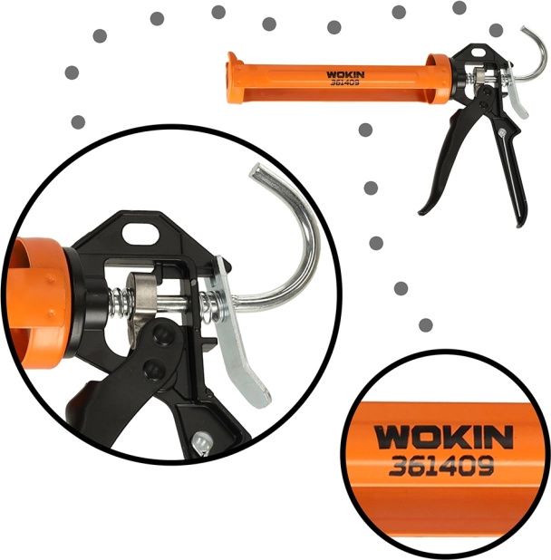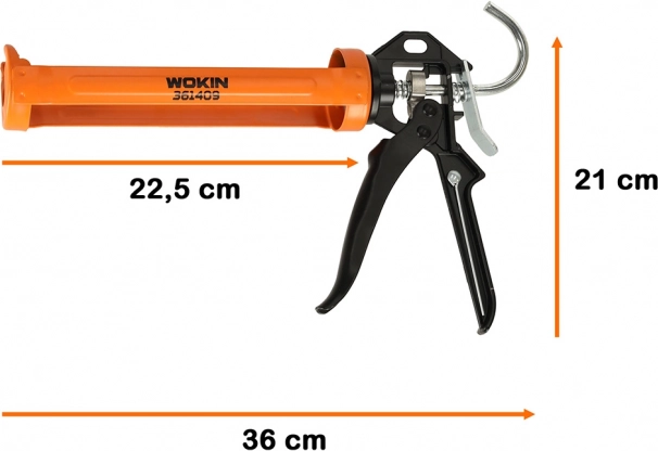 A megbízható, kézi WOKIN kinyomópisztoly ideális ablakok és ajtók szereléséhez és tömítéséhez, falcsatlakozások hézagolásához, falak és tetők szigetelési munkáihoz, valamint dilatációs hézagok kitöltéséhez. A 360°-ban forgatható test megkönnyíti a hozzáférést a nehezebben elérhető helyekhez, és tiszta, egyenletes anyagvezetést biztosít.