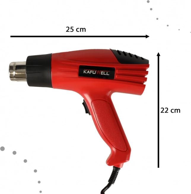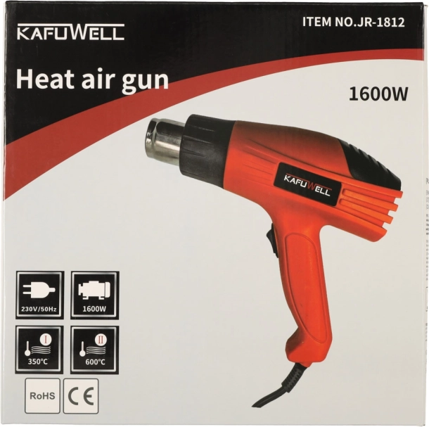 Kafuwell elektromos hőpisztoly kiváló választás mind építési, mind dekorációs munkákhoz. Teljesítménye 1600 W, így rendkívül hatékony eszköz, amely bármely műhelyben helyet kaphat.