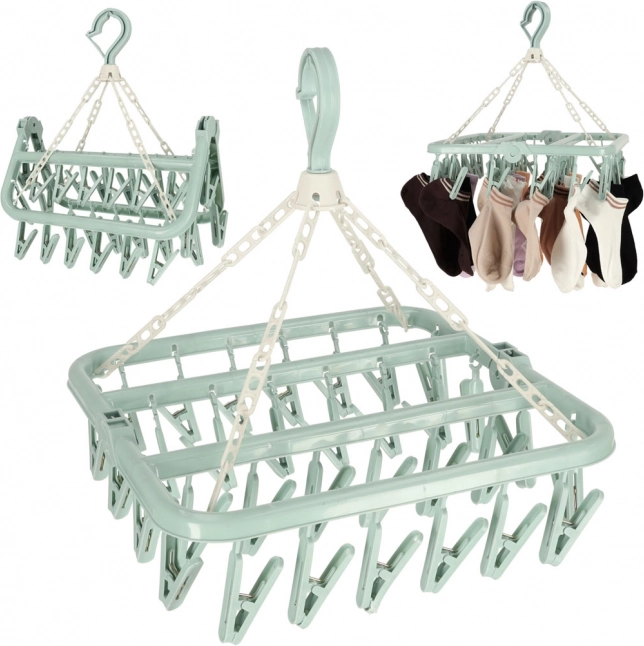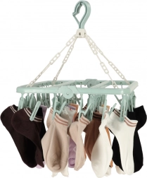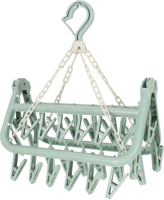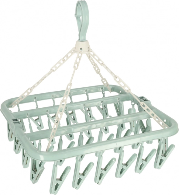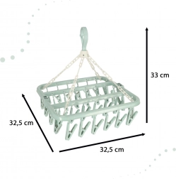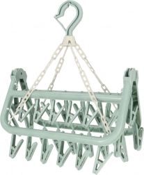 Az univerzális műanyag ruhaszárító elengedhetetlen segítőtárs minden háztartásban. 32 csipesszel rendelkezik, amelyek lehetővé teszik jelentős mennyiségű apró ruha szárítását. Kompakt kialakítása lehetővé teszi a fürdőszobában, erkélyen vagy nagy álló szárítón való felakasztást is, ezáltal segíti a helytakarékosságot.