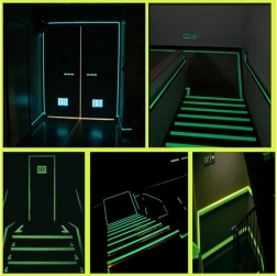 A foszforeszkáló szalag a lépcsőn biztosítja a láthatóságot a sötétben, fokozva ezáltal a biztonságot.