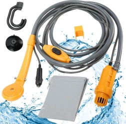 Ez a hordozható utazózuhany szabványos 12 V-os autós aljzatról működik, így könnyen használható autóban, lakóautóban, hajón vagy olyan helyen, ahol akkumulátorhoz van hozzáférés. A hosszú tápkábelnek és a tömlőnek köszönhetően a kezelés kényelmes, a tisztálkodás pedig gyors.