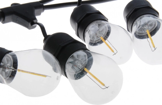 Adjon meghitt, meleg fényt kültéri tereinek. Ez a 10 méteres fényfüzér 10 cserélhető LED E27 izzóval kellemes, meleg fehér megvilágítást biztosít, amely kiemeli a nyári esték, kerti partik és romantikus erkélyi pillanatok hangulatát.