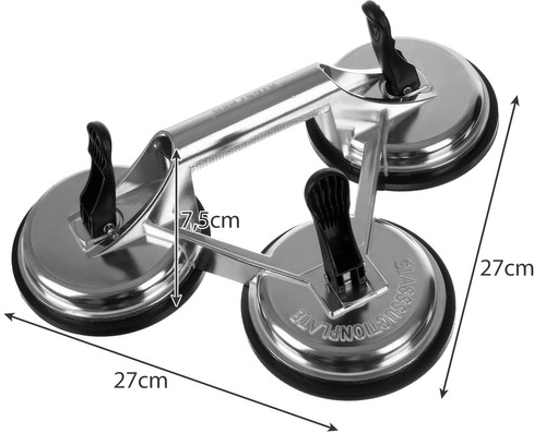 Ez a masszív BIGSTREN alumínium hármas szívóemelő ideális választás szerelőknek, üvegeseknek és barkácsolóknak egyaránt. A három nagy, 120 mm-es gumiszívó mechanikus karos leszorítással erős és stabil rögzítést biztosít sima, nem porózus felületeken, mint az üveg, fém, máz vagy lakkozott fa.