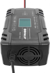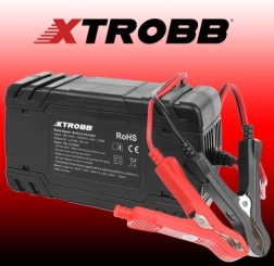 Kompakt és nagy teljesítményű XTROBB akkumulátortöltő 12 V és 24 V rendszerekhez, intelligens mikroprocesszoros vezérléssel. Kínál automatikus feszültségfelismerést, impulzusos javító üzemmódot a szulfátosodott vagy részben károsodott akkumulátorok felfrissítéséhez, valamint átfogó védelmet a pólusfelcserélés, rövidzárlat, túltöltés és túlmelegedés ellen. A érintőpanel és az LCD kijelző révén a kezelés egyszerű és áttekinthető. Ideális autókhoz, motorkerékpárokhoz, fűnyírókhoz és csónakokhoz.