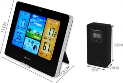 A vezeték nélküli kültéri érzékelő akár 60 méterig továbbítja az adatokat, így könnyen elhelyezhető erkélyen, teraszon vagy a kertben. Az állomás egyidejűleg jeleníti meg a beltéri és kültéri értékeket, 12–24 órára előrejelzi az időjárást, és figyelmeztet a beállított hőmérséklet alá eséskor. A háttérvilágítás hálózati táplálásnál folyamatos, elemhasználatnál érintésre ideiglenesen felkapcsol.