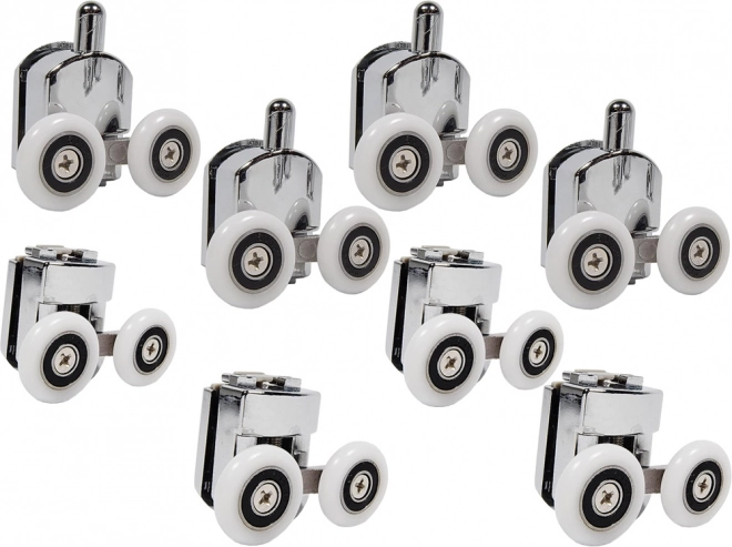 A precíz csapágyakkal a görgők támogatják a folyamatos és csendes ajtónyitást és -zárást. A készlet nyolc görgőt tartalmaz – négy felső és négy alsó – támogatva az ajtók stabilitását.