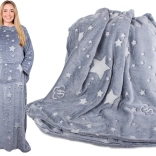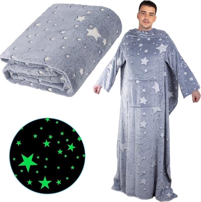 Tervezve bő ujjas megoldással, amely lehetővé teszi a mozgásszabadságot, a takaró nem csúszik le a földre, mint a hagyományos takarók. Továbbá, fluoreszkáló tulajdonsága biztosítja, hogy sötétben ragyogjon – ideális egyedi otthoni hangulathoz.