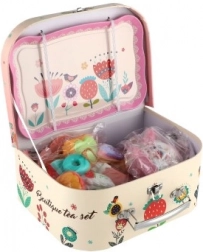 Minden kislány most felszolgálhat teát és kávét barátnőinek és plüss játékainak ezzel a bájos teáskészlettel. A készlet praktikus bőröndben van, ami ideálissá teszi utazási játékra.