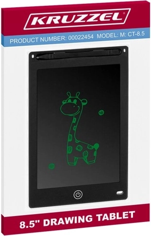 A Kruzzel rajztábla érintésre érzékeny grafitokkal vagy bármilyen tárggyal, akár körömmel is. A képernyő felett található egy rajzceruza tartó, amely lehetővé teszi a kényelmes tárolást.