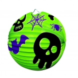 Stílusos halloween lampion gömb alakban, 25 cm átmérővel, amely feldob minden partit, kerti ünnepséget és lampionos felvonulást. Összecsukható szerkezetének köszönhetően könnyű, egyszerűen felakasztható, és pillanatok alatt megteremti a hátborzongató hangulatot. Választható 4 különböző halloween kivitel tökkel, szellemmel, koponyákkal és pókkal. Ideális függő dekorációnak beltérre és fedett kültéri eseményekre is.