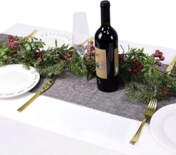 - Eredeti dizájn – szürke, piros és fehér színű elemekkel, melyek egyedi megjelenést biztosítanak az ünnepi asztalnak.