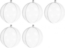 Öt darab 10 cm átmérőjű átlátszó karácsonyi gömb készlet a Ruhhy márkától, amely végtelen dekorációs lehetőségeket kínál minden barkácsolónak. A multifunkcionális átlátszó gömbök könnyen kinyithatók és tollakkal, csillámokkal vagy műhóval díszíthetők.