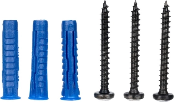 A csomagban tiplik és csavarok vannak – csak 5 mm-es furatokat kell készíteni, és az akasztót szilárdan a falhoz rögzíteni.