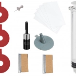 Minden egyben: gyanta, fecskendő, applikátor, ragasztó tömítés, kikeményítő fólia és penge a tiszta befejezéshez.