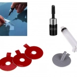 A csomag mindent tartalmaz: csavaros applikátor a vákuum létrehozásához, fecskendő, kikeményítő fólia és penge a felület végső síkba húzásához. A javítás UV-fénnyel vagy közvetlen napsütésben történik, így az eredmény gyors, tartós és hosszan ellenálló.