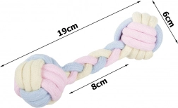 A játék tartós kötélanyagból készült, amely hosszú élettartamot biztosít az intenzív játék során is.