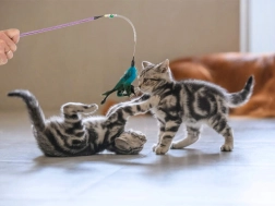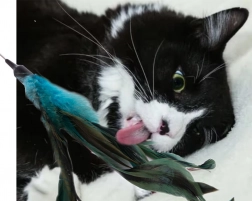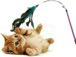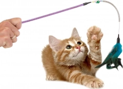 Színes tollak, amelyek puhák és vonzzák a macskákat az interakcióra.