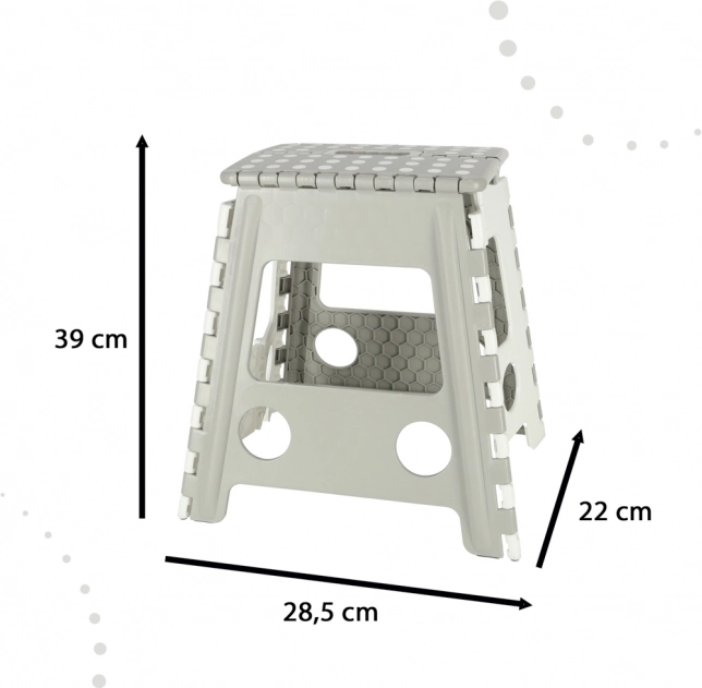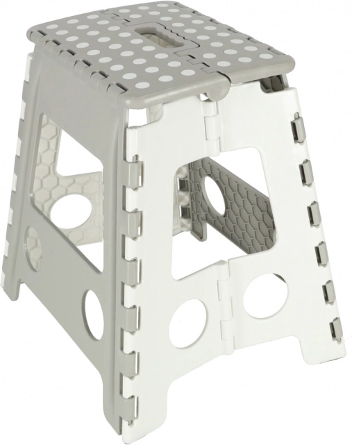 A praktikus összecsukható fellépő ideális segítőtárs a konyhába, a gardróbba és a műhelybe. Biztos fellépést nyújt a felső polcok és szekrények eléréséhez, és a csúszásgátló felső felületnek köszönhetően használata biztonságos. A tartós műanyag konstrukció stabilitást és 150 kg teherbírást biztosít.