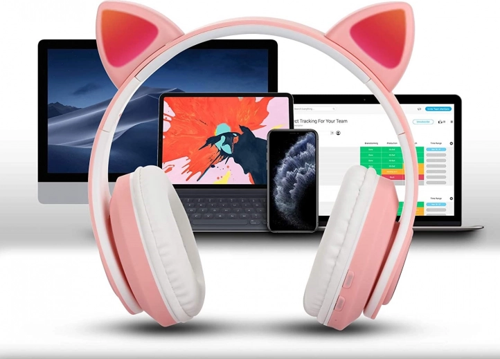 Vezeték nélküli bluetooth fülhallgató fülekkel – Rózsaszín