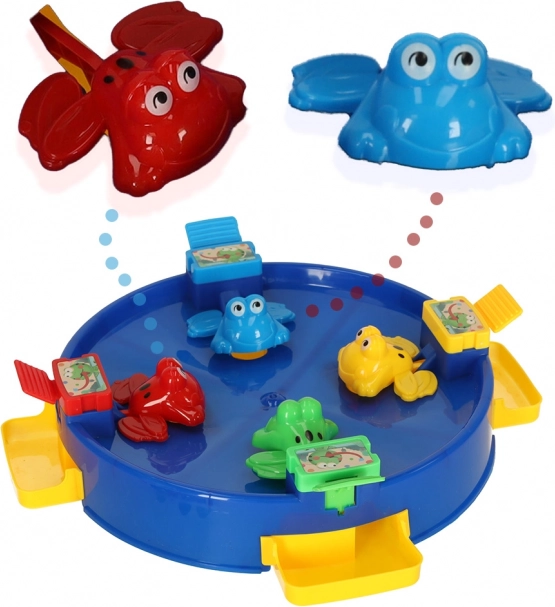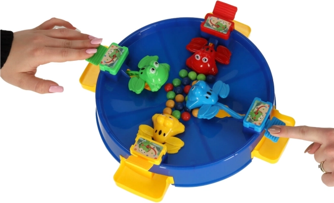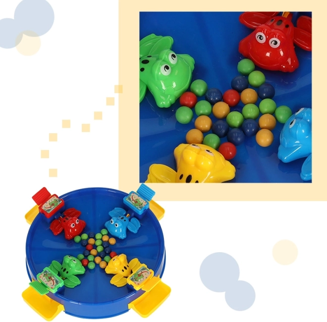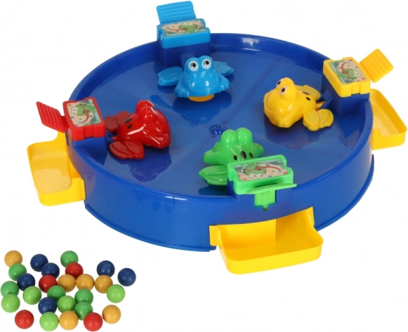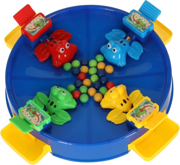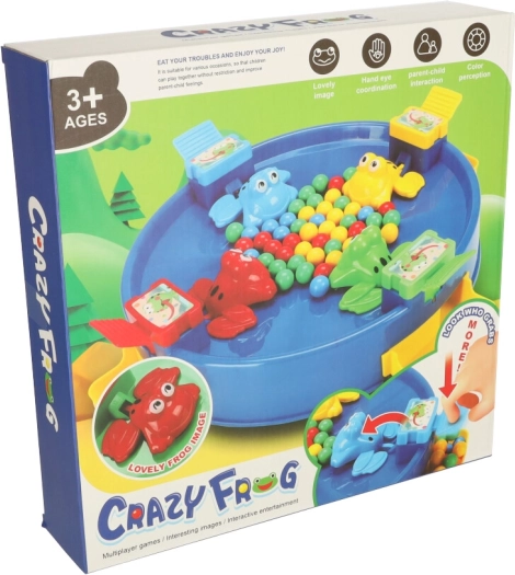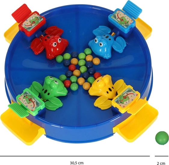 Élvezze az egyedülálló szórakozást az ugráló békákkal, ahol az egész család részt vehet. Ez a játék 2 és 4 játékosnak szól, akik a tavat körülvevő színes békák segítségével igyekeznek minél több golyót összegyűjteni. A szórakozás akkor kezdődik, amikor a golyókat a játék közepébe helyezik, és a békák mechanizmusa magával ragadja a játékosokat.