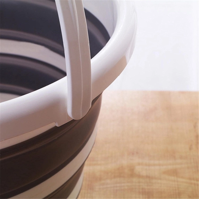 A 10 literes összecsukható vödör tartós, erős szilikonból készül, amely körben merevítést kapott a nagyobb stabilitásért. A felső perem és az alj kemény műanyagból készült, így a vödör jól tartja a formáját és könnyen kezelhető.