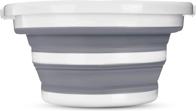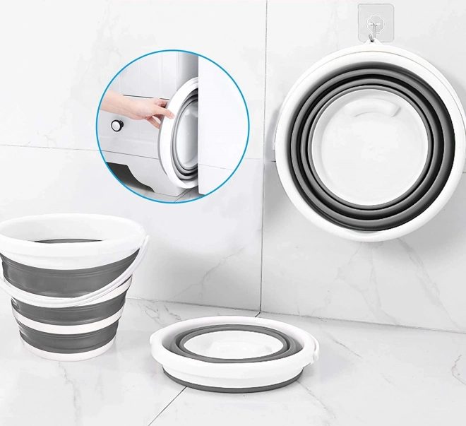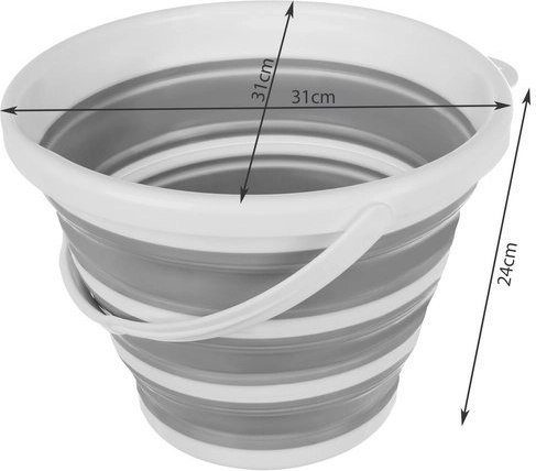 Összecsukva a vödör magassága mindössze kb. 5 cm, ezért könnyen elfér a szekrényben, az autó csomagtartójában vagy a lakóautóban. A praktikus fogantyú és az akasztónyílás megkönnyíti a hordozást és a tárolást.