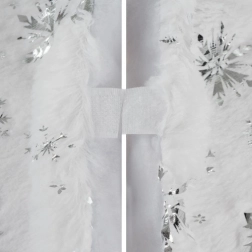 A textília az alátéthez puha és bolyhos, ideális karácsonyi dekorációkhoz, amelyek elegáns megjelenést kölcsönöznek a fájának és a szobának is. Az ajándékok és díszek elhelyezése ezen az alátéten kiemeli az általános karácsonyi hangulatot.