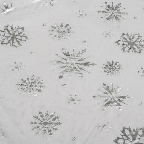 Ez az alátét gyönyörű ezüst csillagokkal és hópelyhekkel van díszítve, amelyek egyedülálló varázslatos megjelenést kölcsönöznek a karácsonyi dekorációnak.