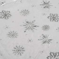 A szoknya gyönyörű ezüst pelyhekkel van nyomtatva, amelyek elegáns megjelenést kölcsönöznek a karácsonyfának.