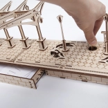 A UGEARS mechanikus 3D kirakó a hagyományos anyagot okos mechanikával ötvözi. Összeállítás után részletgazdag vasútállomás-peron modellt kap lépcsővel, paddal, órával és korláttal. A precíz kivágásnak köszönhetően az elemek pontosan illeszkednek, és a modell simán mozog.