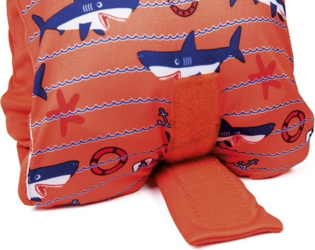 Az élénk narancssárga szín vidám cápamintával ösztönzi a gyerekeket, hogy több időt töltsenek a vízben, és növeli a láthatóságot.
