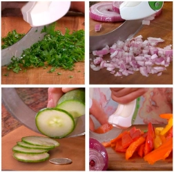 Szeletelje a pizzát, húst, zöldséget, fűszernövényeket, gyümölcsöt és még sok mást egy húzással, nagy pontossággal.