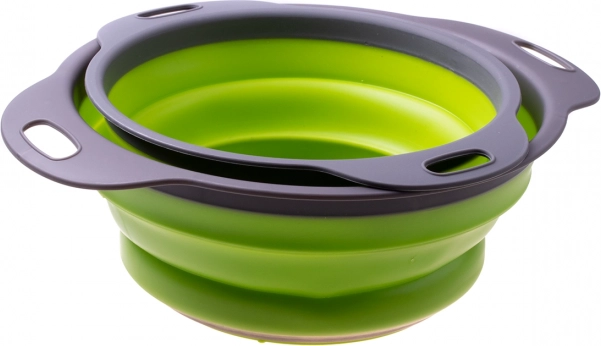 Tartalmaz egy két összecsukható tálból álló szett, amely praktikus és funkcionális segédeszközként egészíti ki a konyháját.